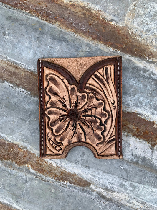 Front Pocket Hand Tooled Leather Wallet with a Sheridan Flower