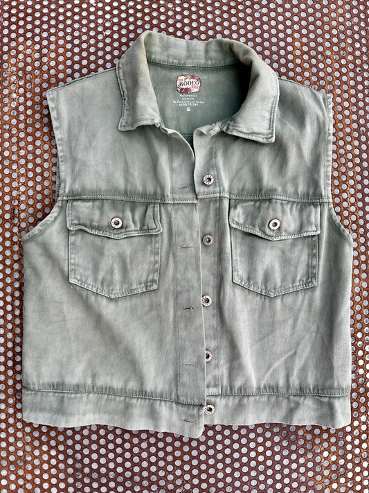 Hand Tooled Floral Scroll Pattern Printed Vest in Sage