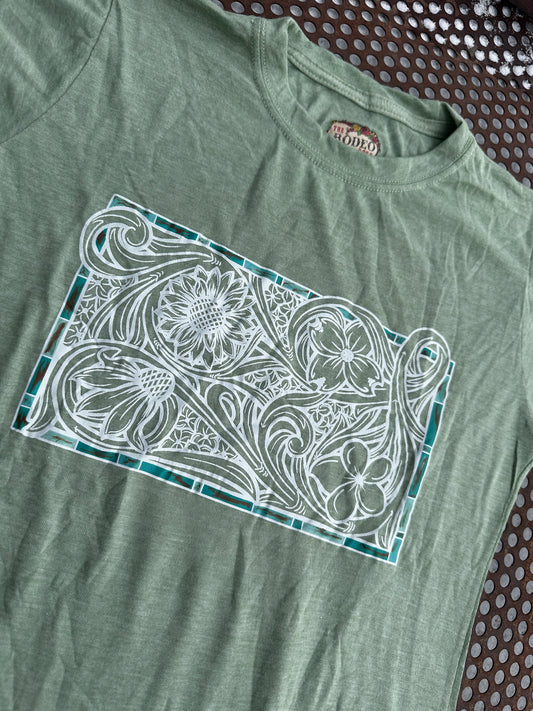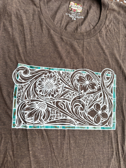 Introducing the Tooled Leather Floral Collection by The Rodeo Rose, where intricate hand-drawn graphics meet the timeless elegance of Western craftsmanship. This exquisite collection is adorned with a stunning array of sunflowers, coneflowers, dogwood flowers, and petite blooms, each meticulously drawn. From delicate floral motifs adorning leather accessories to intricately designed apparel, every piece in this collection showcases the artistry and attention to detail that define The Rodeo Rose brand. Whether you're looking for a statement piece to elevate your outfit or a unique gift for someone special, the Tooled Leather Floral Collection offers a harmonious blend of rustic charm and artistic flair. Handcrafted with care and passion in The Rodeo Rose workshop, nestled at the base of South Dakota's Black Hills.