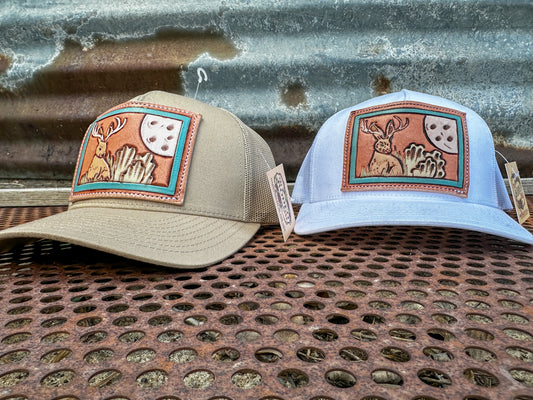 Tooled Cowboy Hat Leather Patch Trucker Cap