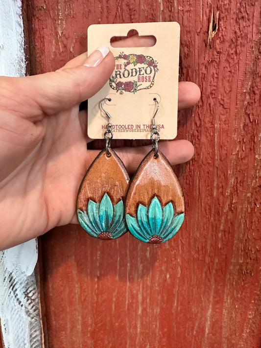 The Tad Handtooled Leather Earring in Spring Colors
