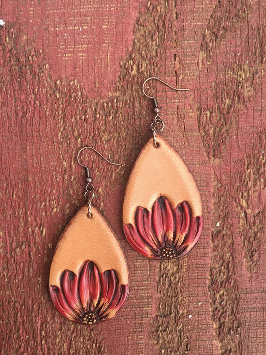The Tad Handtooled Leather Earring in Autumn Colors