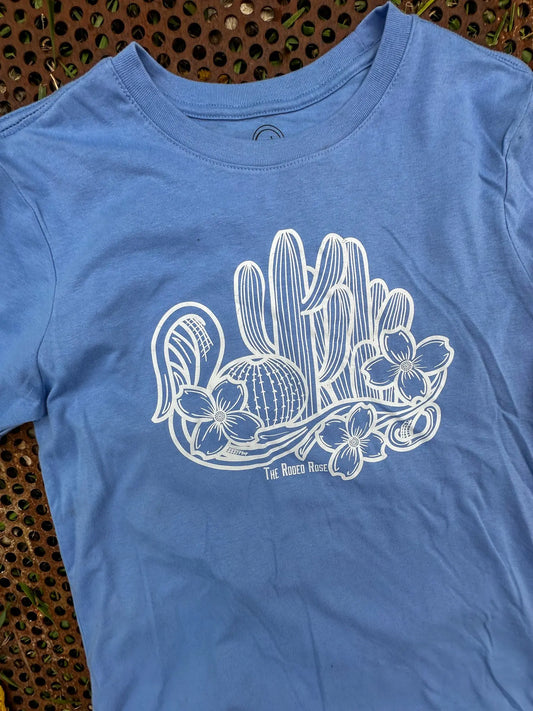*One of a Kind* Cactus floral tshirt in light blue