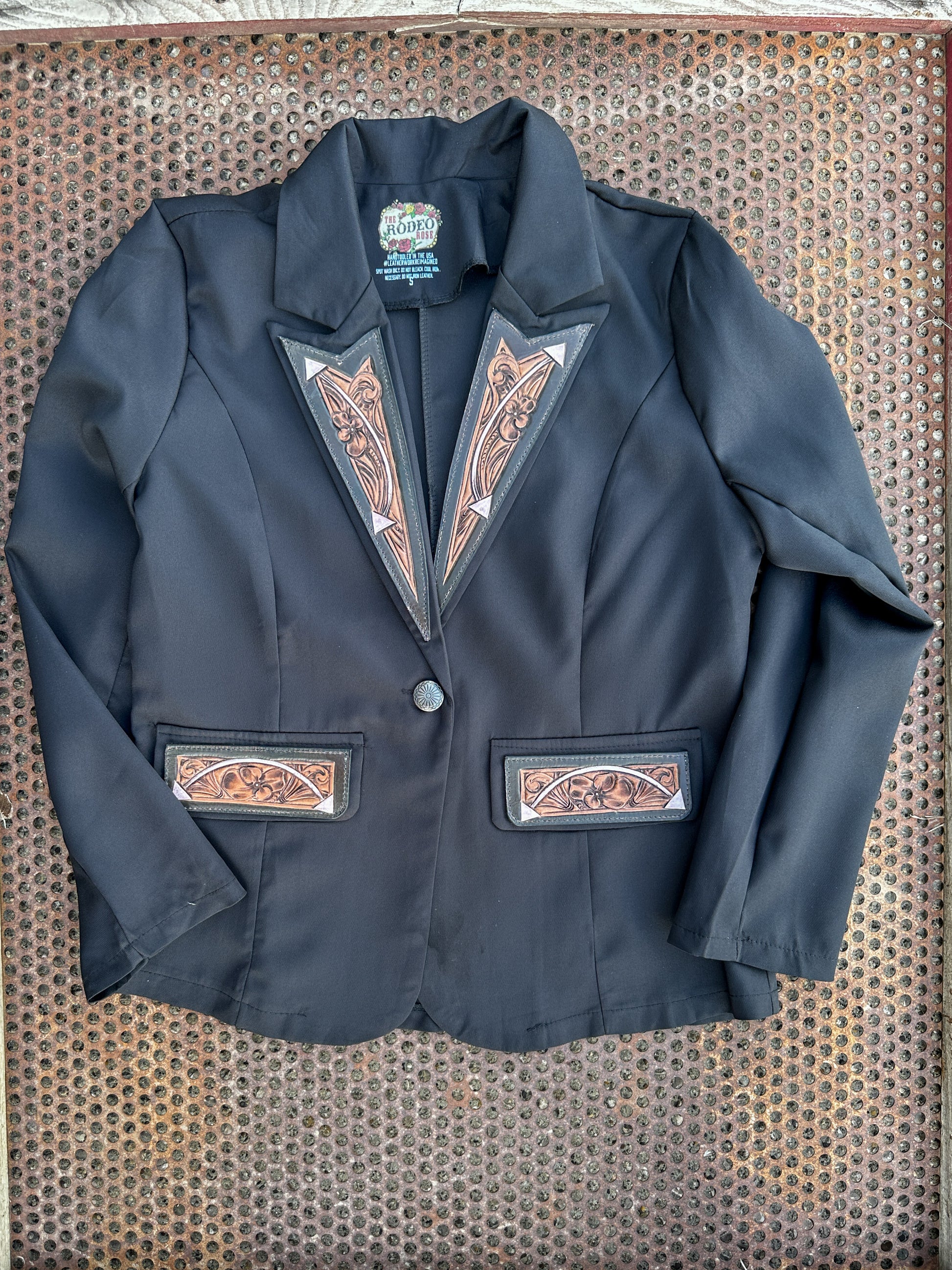Experience the unique craftsmanship of our Boot Stitch Hand Tooled Lapel Blazer! Each tan blazer features a one-of-a-kind boot stitch floral tooled pattern, handcrafted in The Rodeo Rose shop in South Dakota. With faux pockets and a perfect fit, you'll love the originality and comfort of this long sleeve blazer.