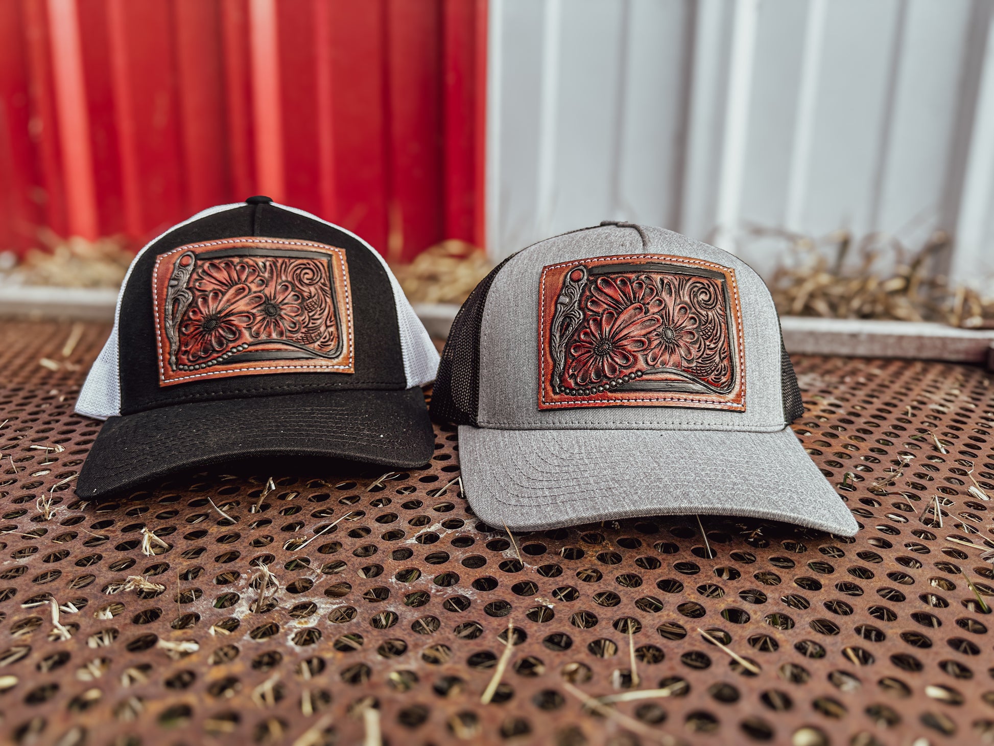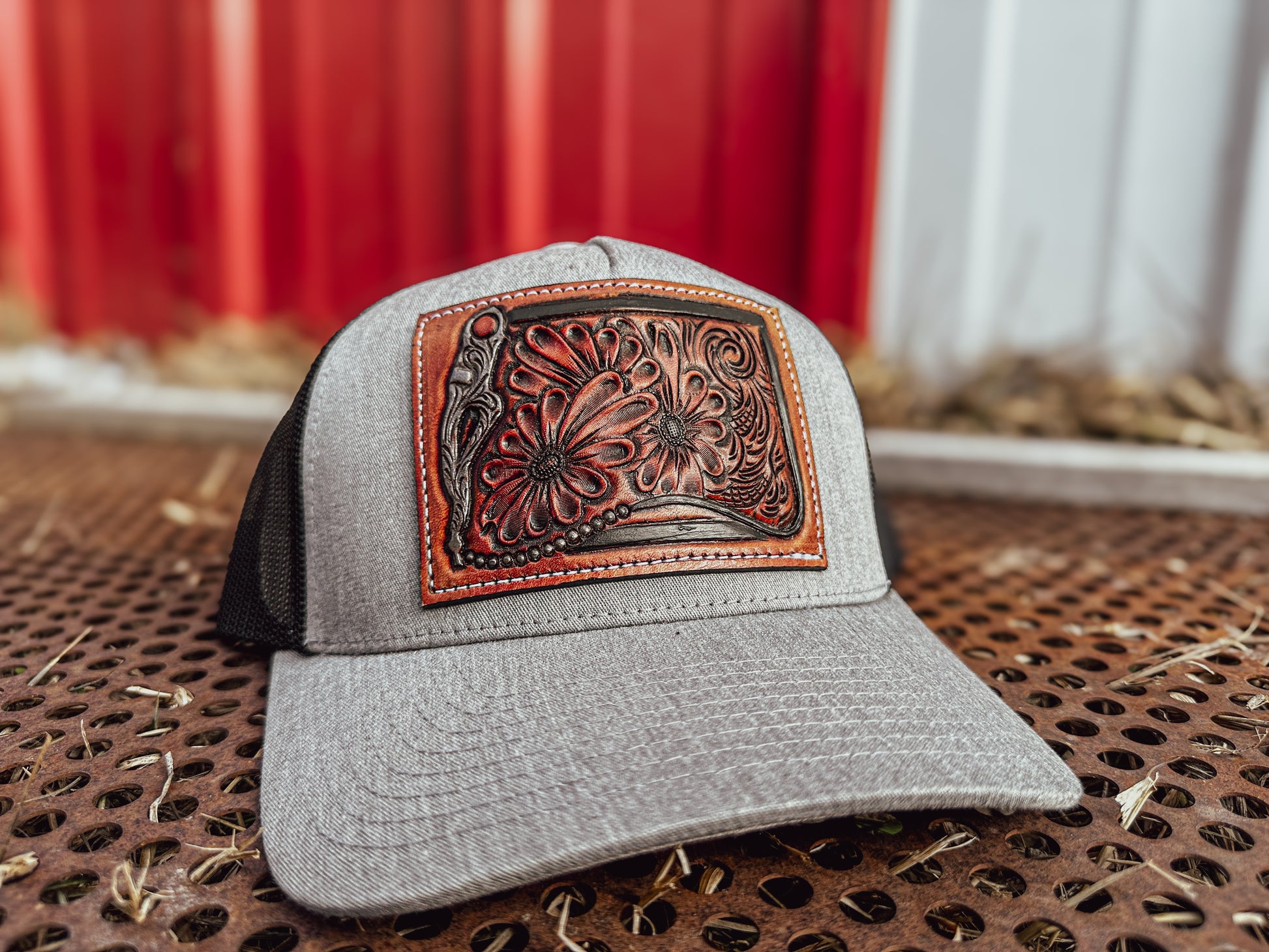 Bridle Bit and Daisy Tooled Leather Patch Cap